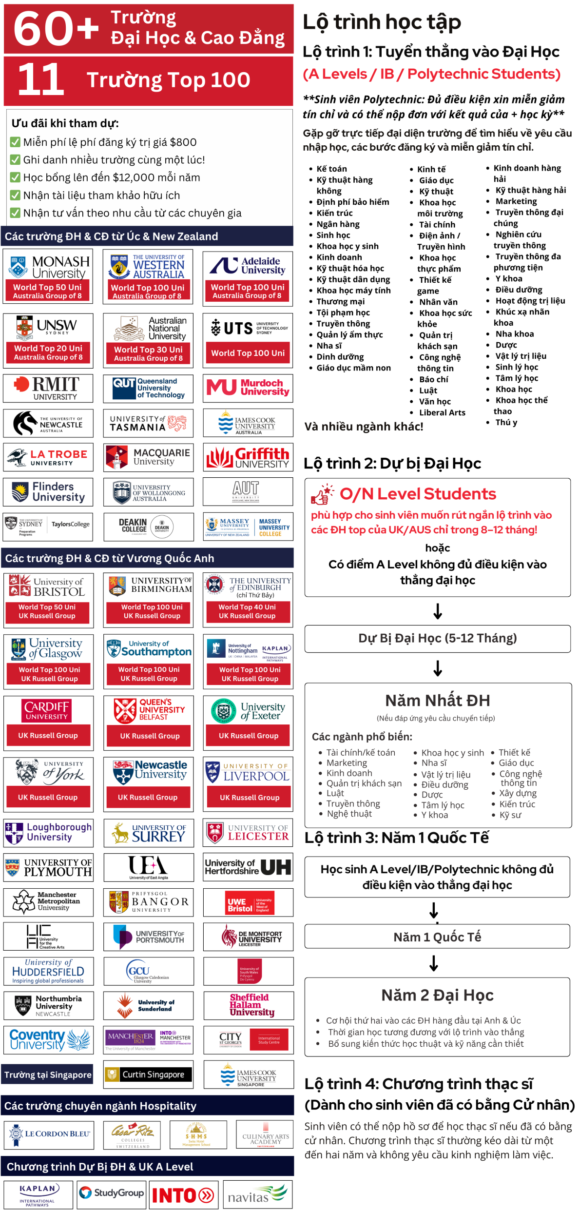 Chúng tôi đã giúp hàng trăm sinh viên nhập học thành công tại các trường đại học danh giá ở Anh và Úc, như: